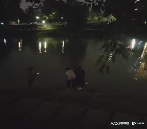 她对着一位路人呼喊,“你不要走,那湖里面不知道是不是人,要是有人你就帮个忙。”又朝着夜色喊叫:“大家来帮忙,我老公一个人跳下去了!”