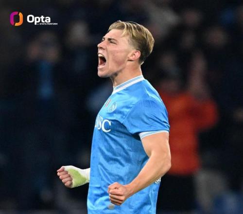 此役主场对阵尤文图斯,霍伊伦在开场第7分钟破门,帮助那不勒斯取得1-0领先。